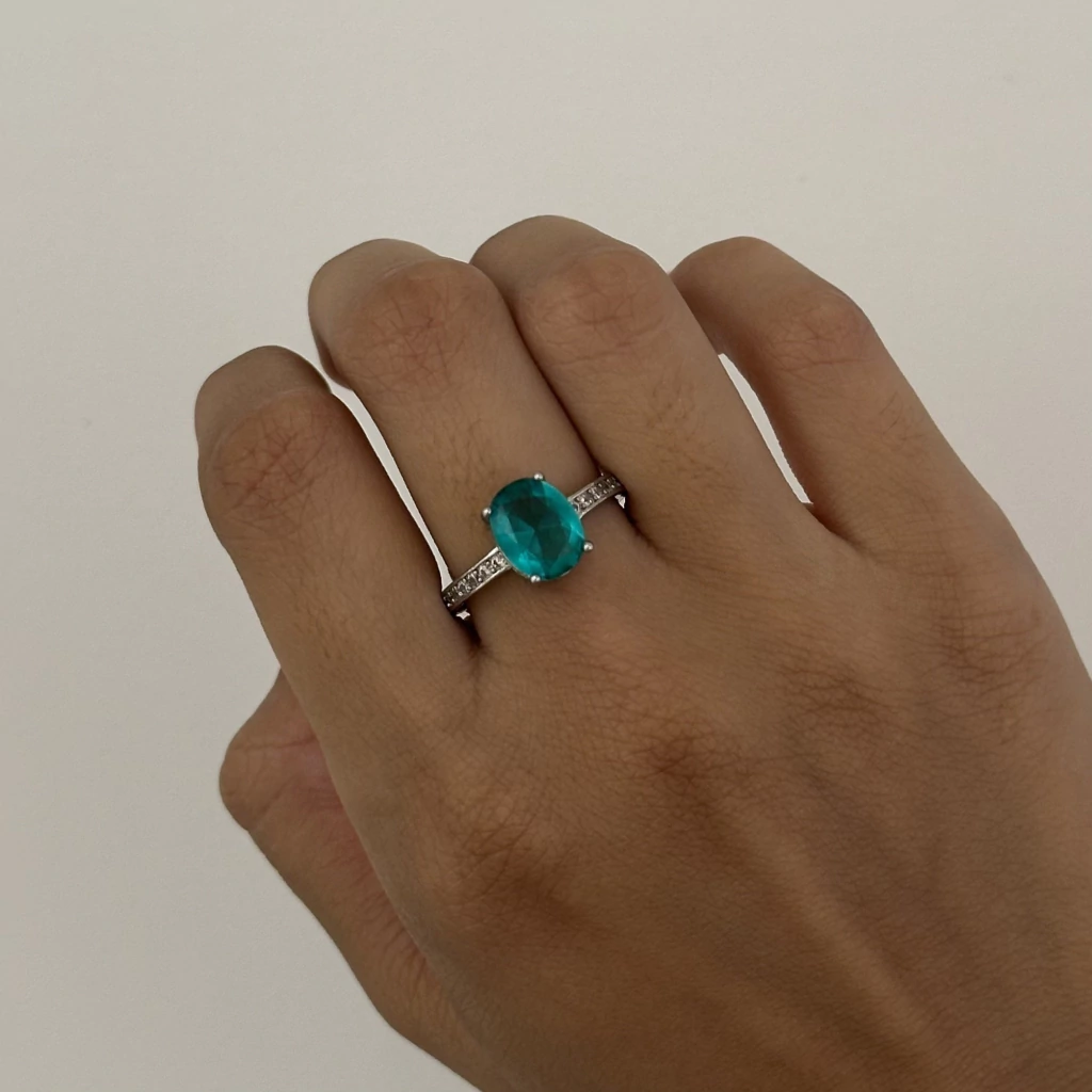 Sofisticação com toque de cor! O Anel Cravejado Oval banhado a Ródio Branco é uma peça imponente e cheia de charme. Sua pedra central em formato oval, na tonalidade turmalina, é envolvida por microzircônias Rosa Quartzo, que também se estendem pelo aro, criando um brilho delicado e feminino. Ideal para ocasiões especiais ou para trazer elegância ao dia a dia.