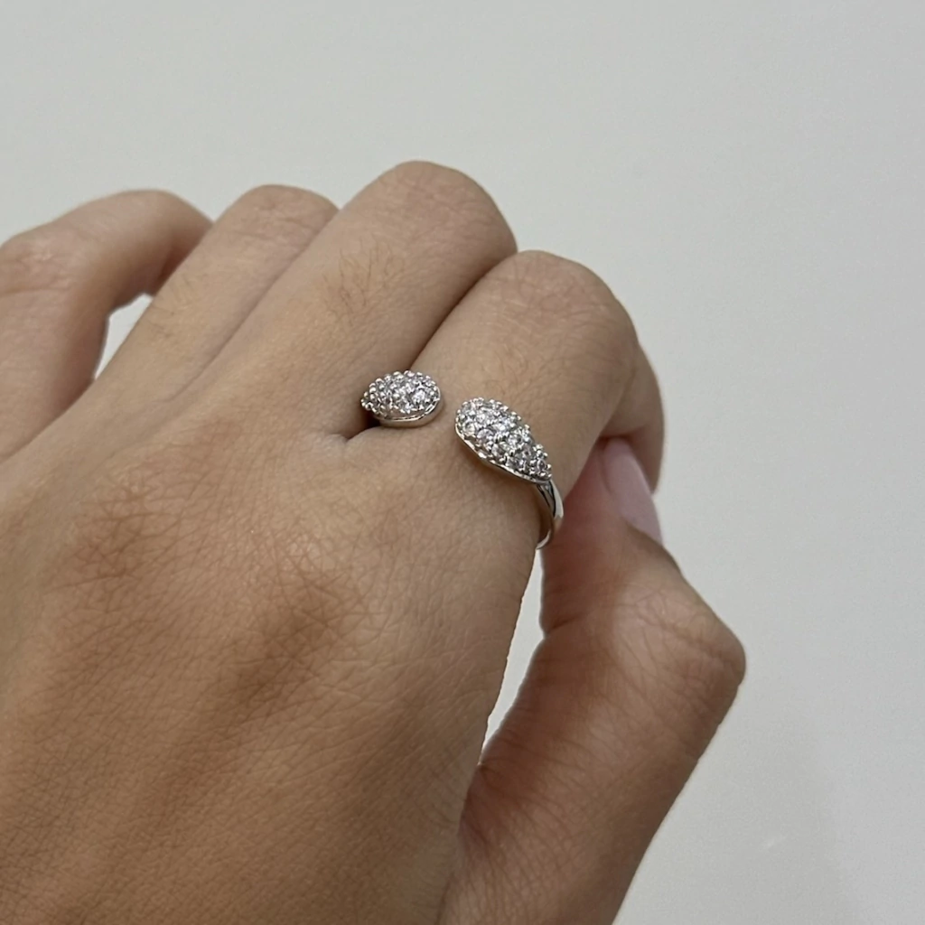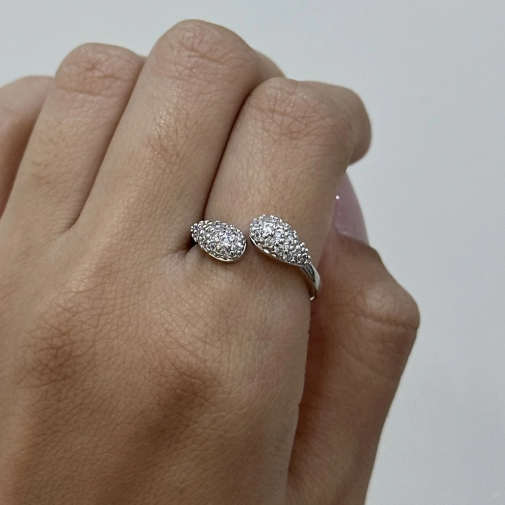 Brilho delicado em cada detalhe! O Anel Pontas Gota Cravejado banhado a ródio branco é uma peça ajustável com design moderno e pontas em formato de gota, ambas cravejadas com microzircônias que garantem um toque de sofisticação. Um anel elegante e versátil para compor qualquer produção com charme.