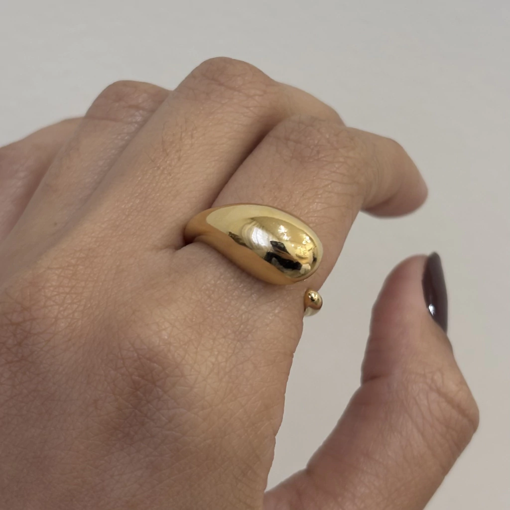 Toque ousado com sofisticação! O Anel Volta Grossa Lado Aberto banhado a ouro 18k traz um design marcante com acabamento liso e moderno. Seu formato com abertura lateral e aro espesso combina impacto visual com conforto, ideal para compor produções elegantes ou casuais com personalidade.
