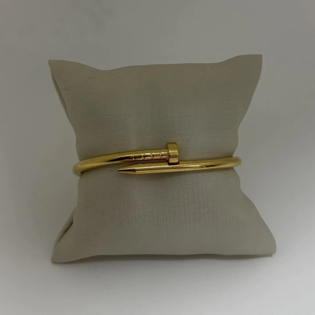 Design icônico e atitude marcante! O Bracelete Prego com Fecho Click banhado a ouro 18k traz o equilíbrio perfeito entre sofisticação e ousadia. Seu formato moderno inspirado em prego é símbolo de estilo autêntico, ideal para quem busca uma peça diferenciada e elegante.