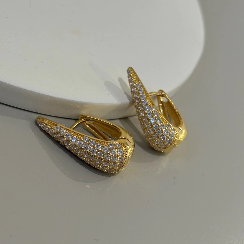 O Brinco Gota Cravejada com microzircônias é uma peça clássica com um toque moderno. Seu formato alongado em gota valoriza o rosto e o acabamento cravejado proporciona um brilho sutil e elegante. Ideal para quem busca uma semijoia refinada, perfeita para eventos ou para elevar o look do dia a dia.