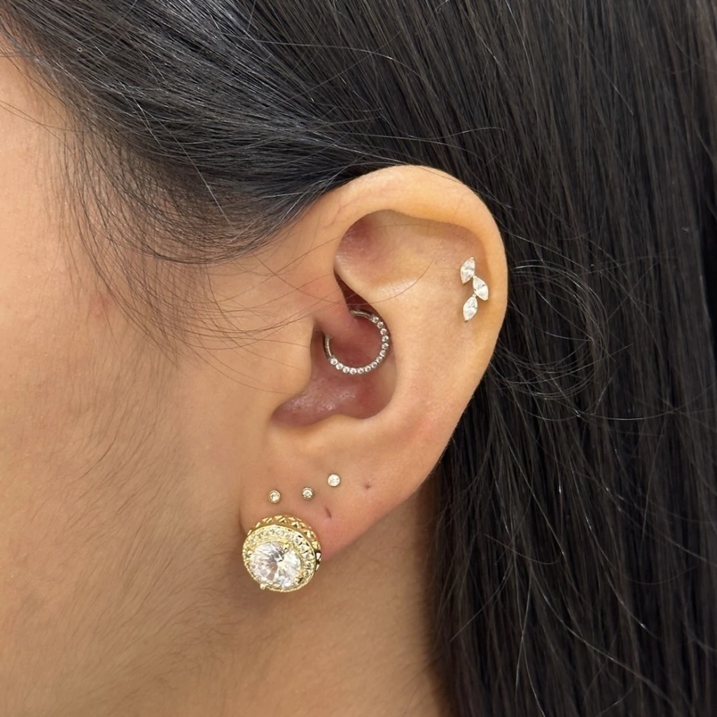 O Brinco Redondo Cravejado com Zircônia banhado a ouro 18k é a escolha perfeita para quem busca uma peça sofisticada e atemporal. Seu design central com zircônia rodeada por microcravação garante um brilho sutil, elegante e cheio de charme.