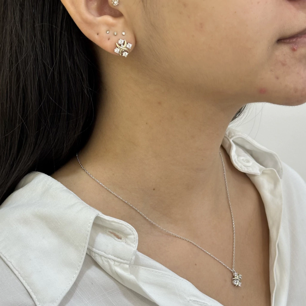 Elegância e brilho para todos os momentos! O Brinco TF X banhado a ouro 18k e Ródio Branco é a escolha perfeita para quem busca sofisticação e versatilidade em uma peça delicada. Ideal para complementar qualquer look, ele combina estilo e conforto com facilidade.