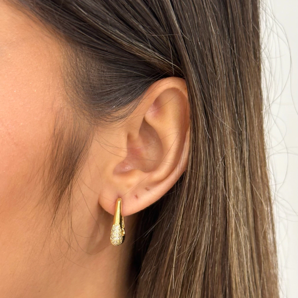 O Brinco Argola Triângulo Liso com Ponta Cravejada de Microzircônias banhado a Ouro 18k é a escolha ideal para quem busca modernidade com um toque de brilho. Seu design triangular com fecho click oferece elegância e praticidade para o dia a dia ou ocasiões especiais.