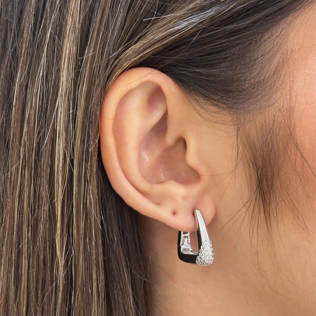 O Brinco Argola Triângulo Liso com Ponta Cravejada de Microzircônias banhado a Ródio Branco une o charme das formas angulares com o toque sofisticado das pedras cravejadas. Um modelo contemporâneo com fecho click, ideal para iluminar seu visual com elegância e modernidade.
