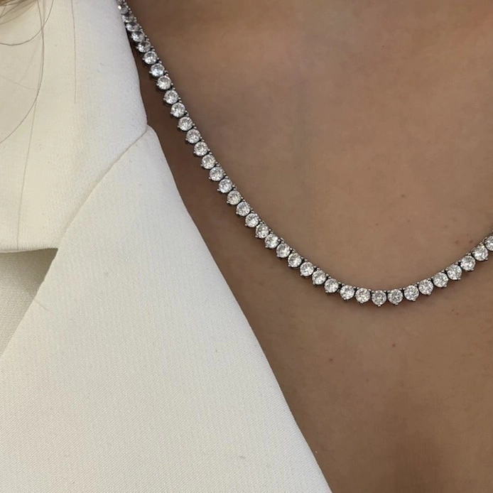 Colar Choker Riviera banhado a Ródio Branco. Brilho de joia em uma semijoia irresistível! O Colar Choker Riviera banhado a Ródio Branco é a definição de elegância atemporal. Com zircônias minuciosamente cravejadas, ele entrega o mesmo brilho intenso de uma joia fina — sem virar no pescoço e com caimento impecável. Ideal para ocasiões especiais ou para adicionar sofisticação ao look do dia a dia.