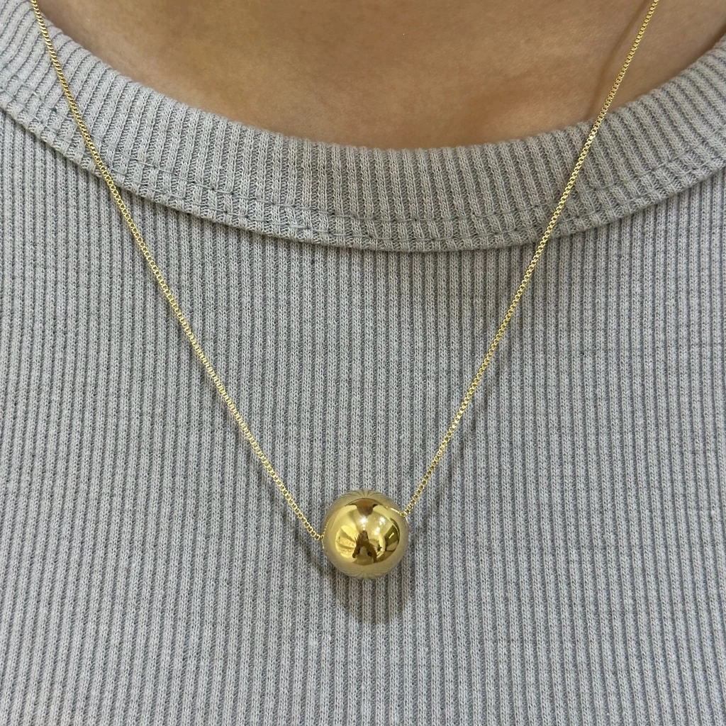 Minimalismo que encanta. O Colar com Pingente Bola banhado a ouro 18k é a definição de elegância discreta. A esfera lisa com acabamento espelhado traz um toque moderno, versátil e sofisticado. Perfeito para ser usado sozinho no dia a dia ou combinado com outros colares para um mix estiloso.