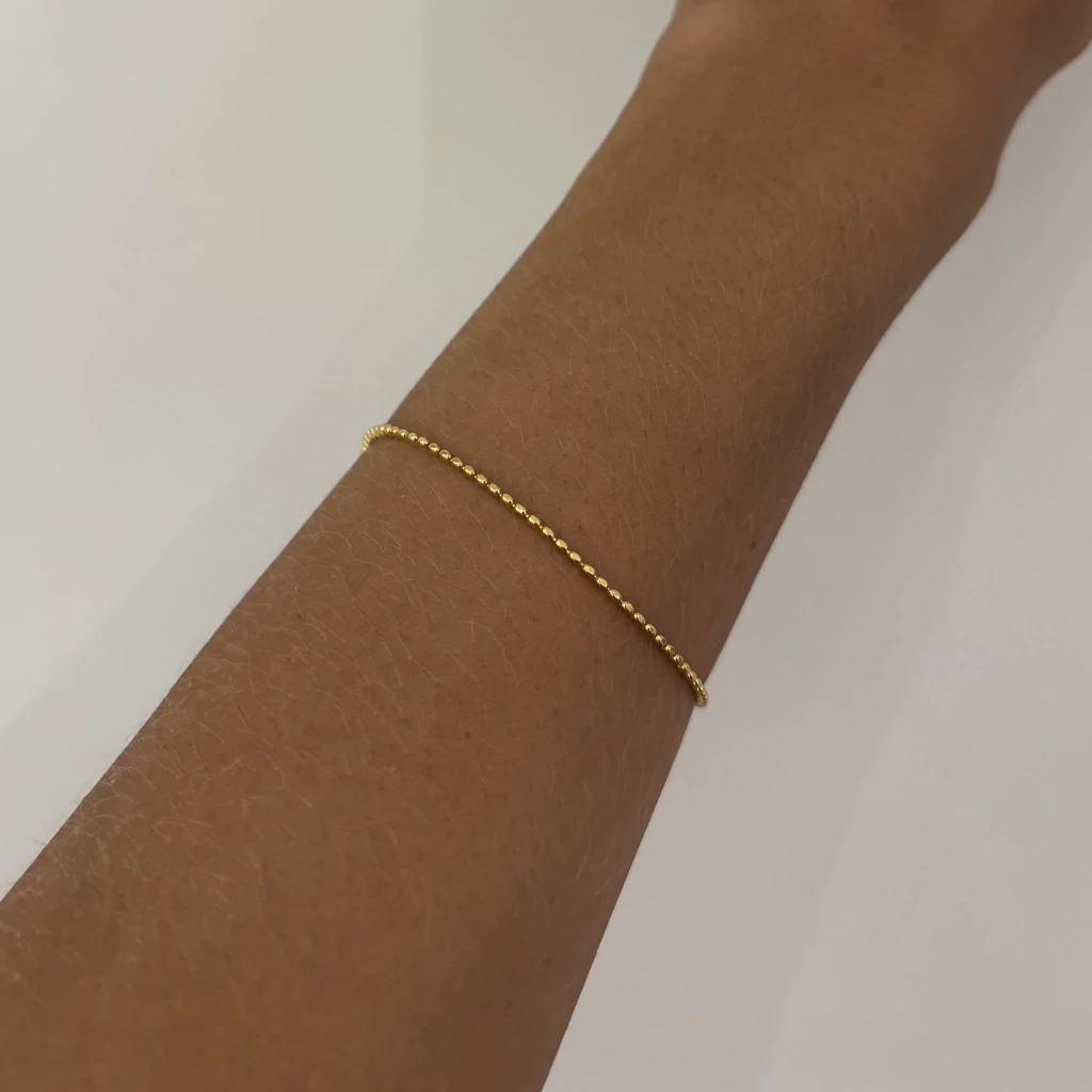 Minimalismo cheio de charme! A Pulseira Mini Chapas Lisas banhada a ouro 18k traz um design delicado e contemporâneo com pequenas chapas distribuídas ao longo da corrente, ideal para quem ama composições discretas e elegantes no dia a dia.